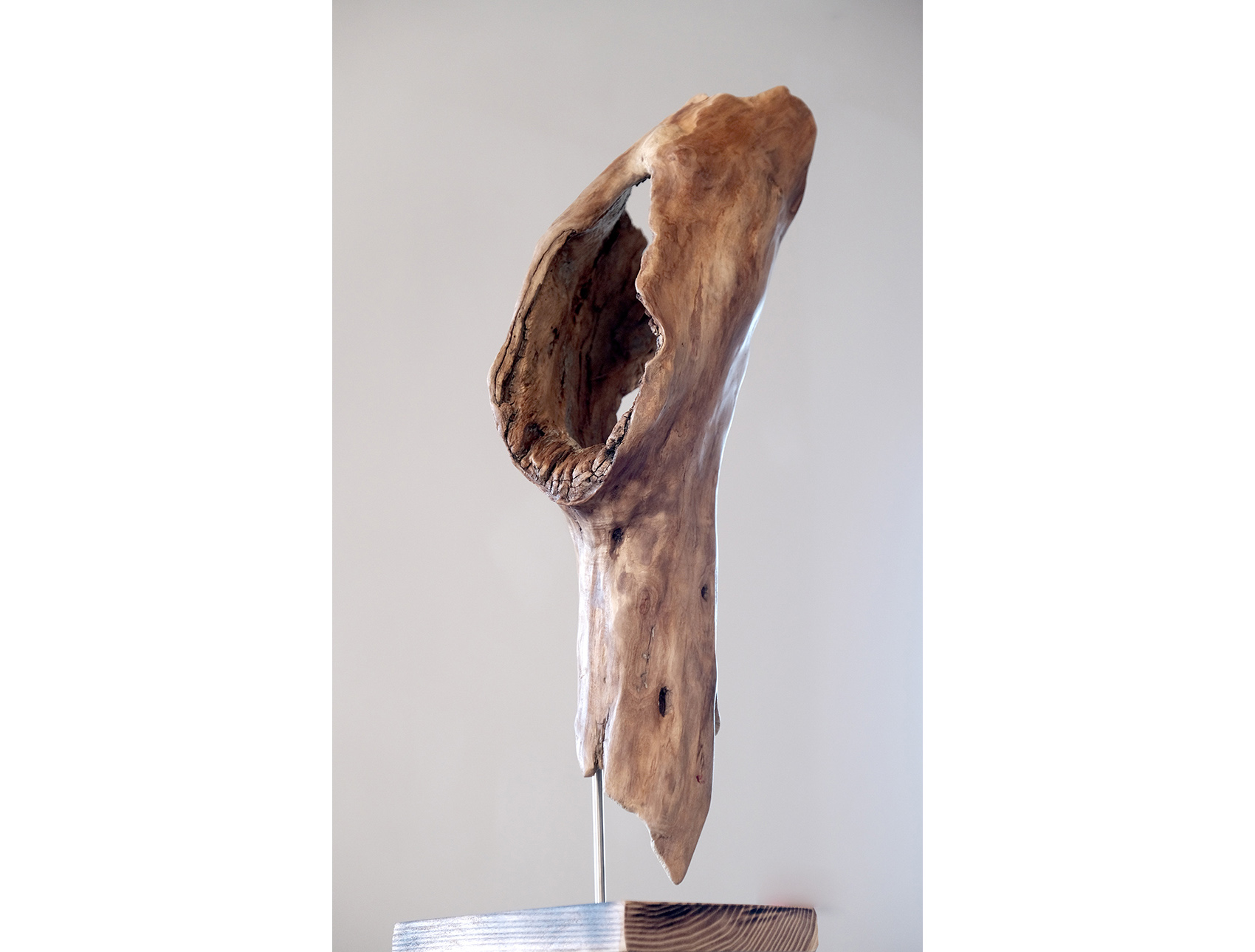 A fény nem uralkodik, hanem kiemel: térbe emeli a fát, hangsúlyozza a kontúrokat, és csendes, atmoszférikus jelenlétet ad a tárgynak.